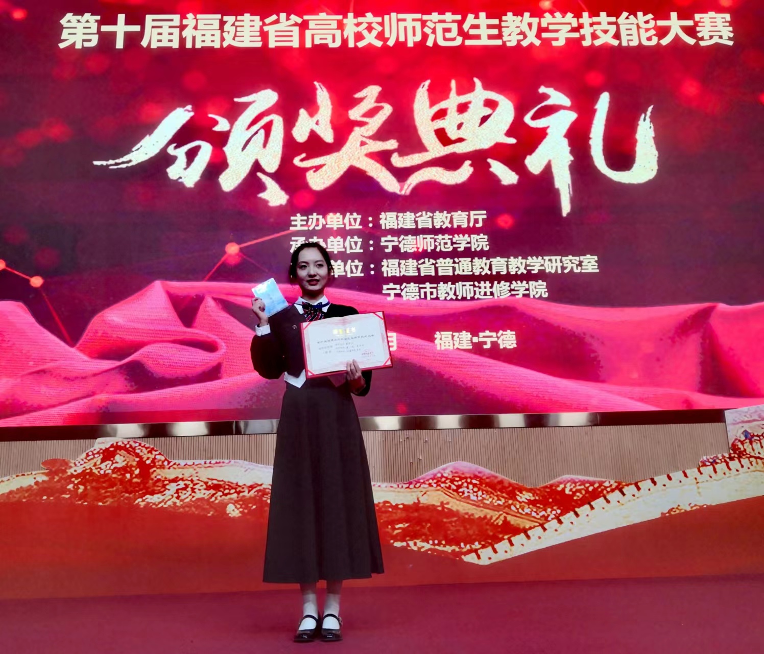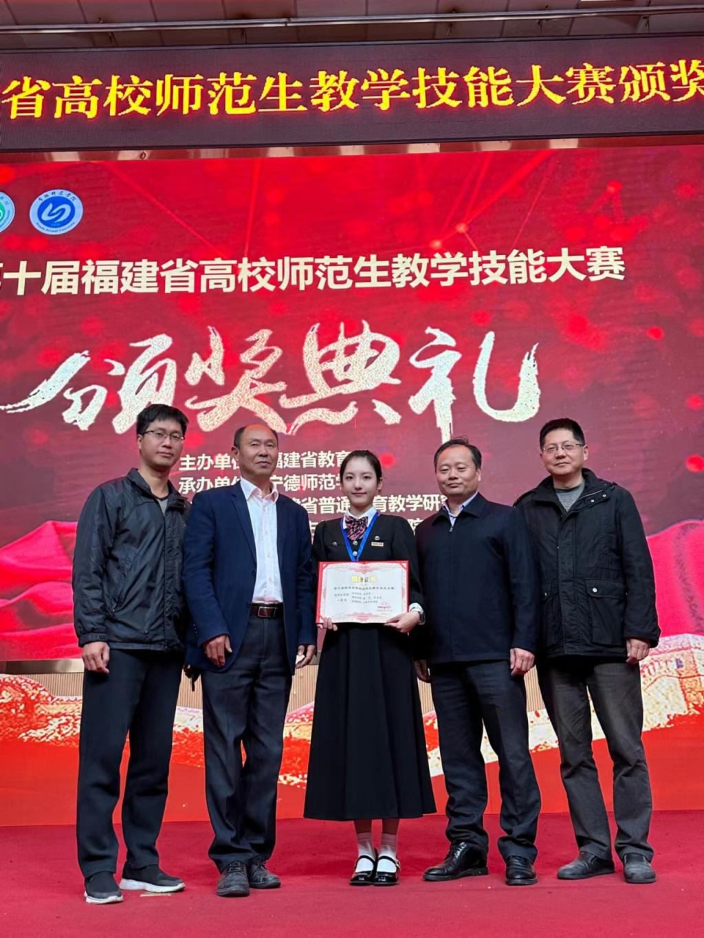 11月25日,第十届福建省高校师范生教学技能大赛在我校隆重举行。本次大赛由福建省教育厅主办,beats365唯一官网入口官网承办。本次赛事共吸引了来自全省高校师范类专业的229位学生参加,其中省内高校9位同学参加初中化学组的决赛。我院薛岚李求忠、周美珍3位教师指导的2020级化学专业辜婷婷同学经过紧张激烈的角逐,最终斩获一等奖,并作为参赛优秀选手代表上台发言,为我学生在高校师范生教学技能大赛中增添亮丽的一笔。