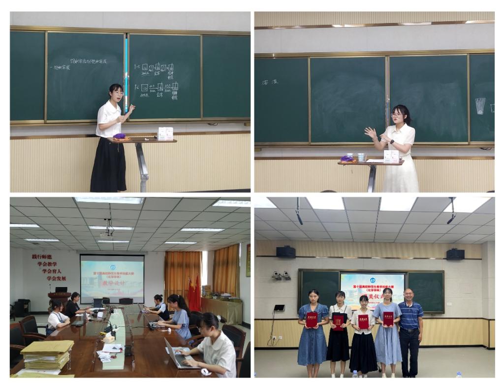 作为参加省赛的校内选拔赛,不仅为参加省赛选拔优秀的选手,同时也为同学们提供了展示能力和专业技能的平台。比赛也折射出同学们从青涩走向成熟,走向稳重的成长与蜕变。比赛中,选手们或在活泼亲和中带着沉稳,或在严肃认真中循循善诱。她们不仅用准确的化学用语展示出化学的奇妙,也在举手投足间,用缜密的逻辑,流畅的言语,表现出对课堂的组织驾驭和熟练的实验技能,同时在教案中积极融入思政元素,寓教于育,小荷才露尖尖角,已然展露出初为人师的模样。
