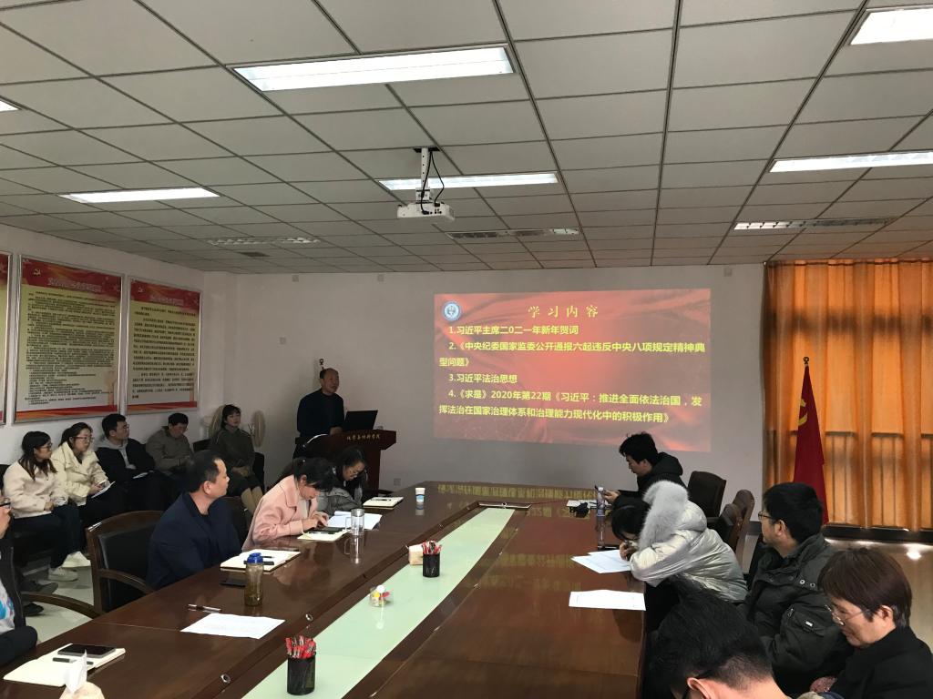 会上,游东宏传达了习近平总书记在中央全面依法治国工作会议上的重要讲话精神和《中央纪委国家监委公开通报六起违反中央八项规定精神典型问题》等文件精神,领学了《习近平主席二〇二一年新年贺词启示录》。