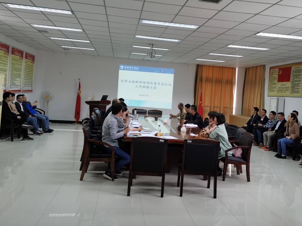 2019年4月16日下午,我院在院会议室召开了化学师范专业认证工作部署会议,对师范类专业二级认证工作进行全面部署。院领导,全体教职工参加等参加会议。应少明院长主持会议。