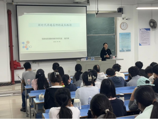 2025412午,福建省普通教育教学研究室正高级教师黄丹青应邀在CC401为beats365唯一官网入口官网师生题为“新时代卓越名师的成长路径”的学术讲座。讲座由院长黄晓辉主持,化学专业师生130余人参加。